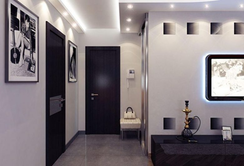 Элегантная функциональность — вот девиз современного стиля в дизайне. Для него характерны четкие линии, контрастные цвета (чаще ахроматические или близкие к ним) и гладкие поверхности. Повсюду используются высокотехнологичные материалы.В современном интерьере маленькой прихожей почти нет украшений, рисунков или выступающих элементов. В целом он составляет впечатление безупречного вкуса и утонченности.
