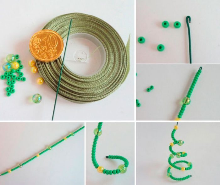 Нанизайте на тонкую проволоку бусинки и бисер.