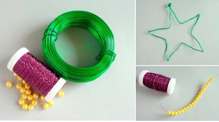 Ёлочная игрушка из проволоки и бусин