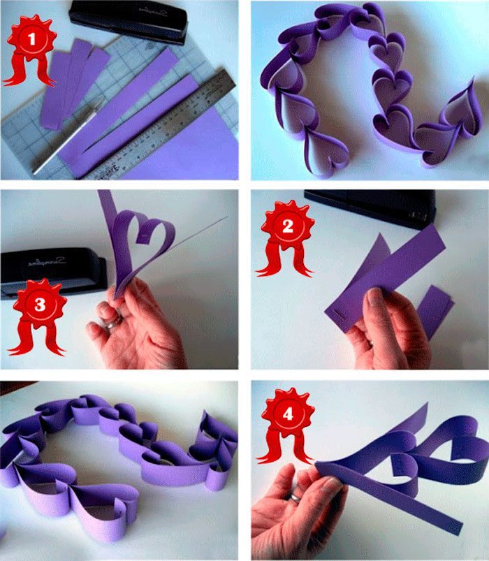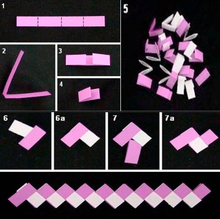 Сплетите гирлянду, вставляя одну заготовку в другую следуя инструкции изображённой на картинке.