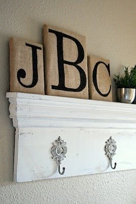 Мешковину можно использовать для изготовления букв, которые часто используются в декоре помещения. Это могут быть и обтянутые мешковиной доски с буквами, и картинка с буквой, и флажки с целой надписью для украшения улицы — дешево, просто и оригинально.