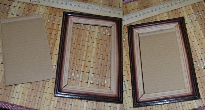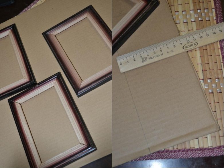 Для начала отмеряем размер задника-основы под рамкой. Рисуем на картоне по нашим замерам.
