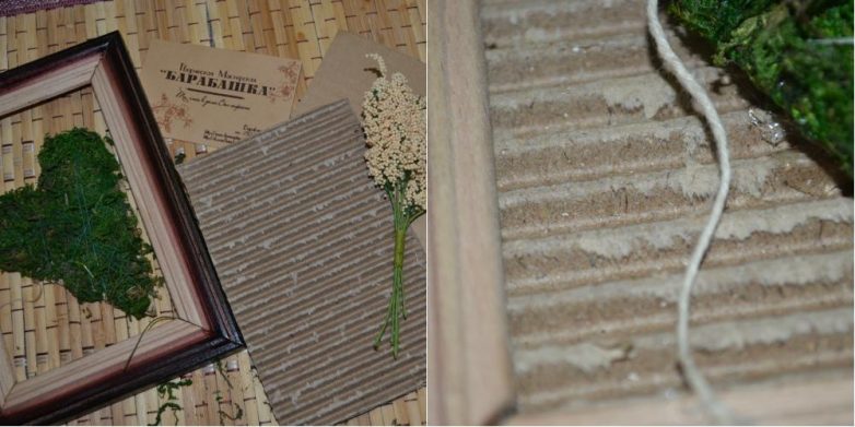 Для этой картины мы выбрали за основу натуральный мох. Приобрести его можно в магазинах для флористов или лавках рукоделия.