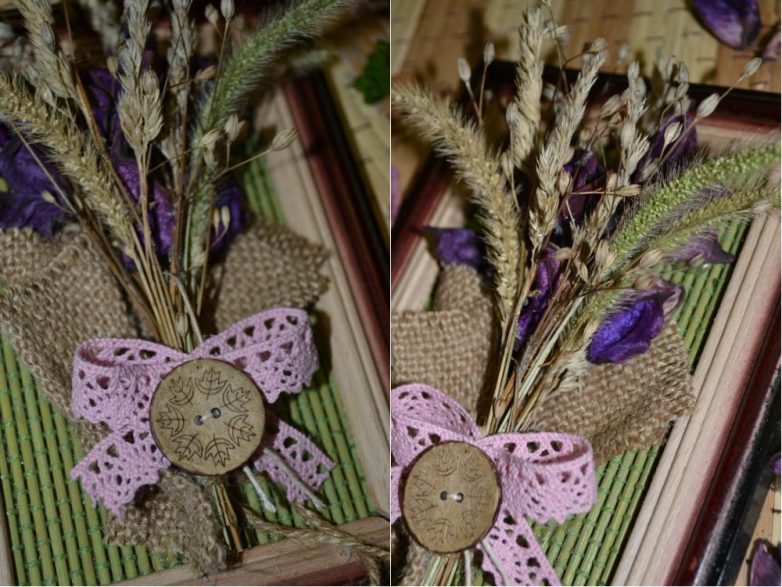Делаем из сухоцветов букет и, чтоб не распадался, перевязываем внизу шпагатом.