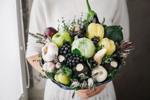 Художница уже два года создаёт уникальные, красочные букеты, с которыми не нужно прощаться — их можно просто съесть. Она делает съедобные букеты из овощей, фруктов и трав, которые ничуть не уступают по красоте и торжественности тем, которые считаются традиционными — из цветов.