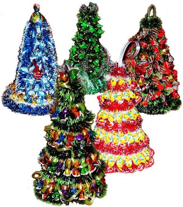 Сделайте конус из картона.Приклейте мишуру к конусу по спирали.