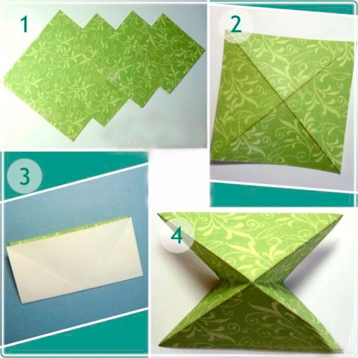 Заправьте 2 противоположных треугольника вовнутрь.