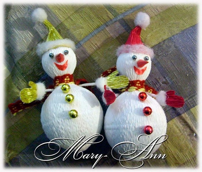Снеговик из конфет и гофрированной бумаги готов!
