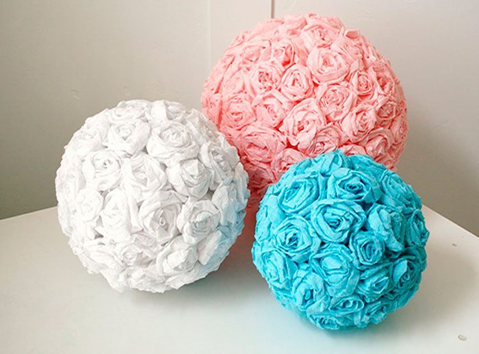 Приклейте розочки на шар, располагая их плотно друг к другу.Приклейте бусины.