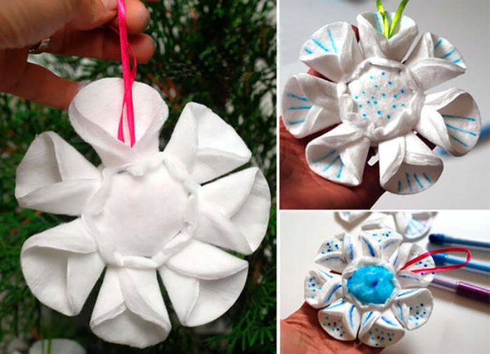 Приближается Новый год. Постарайтесь создать сказочную атмосферу в Вашем доме. В этой статье мы рассмотрим, как сделать поделки из ватных дисков на Новый год своими руками.