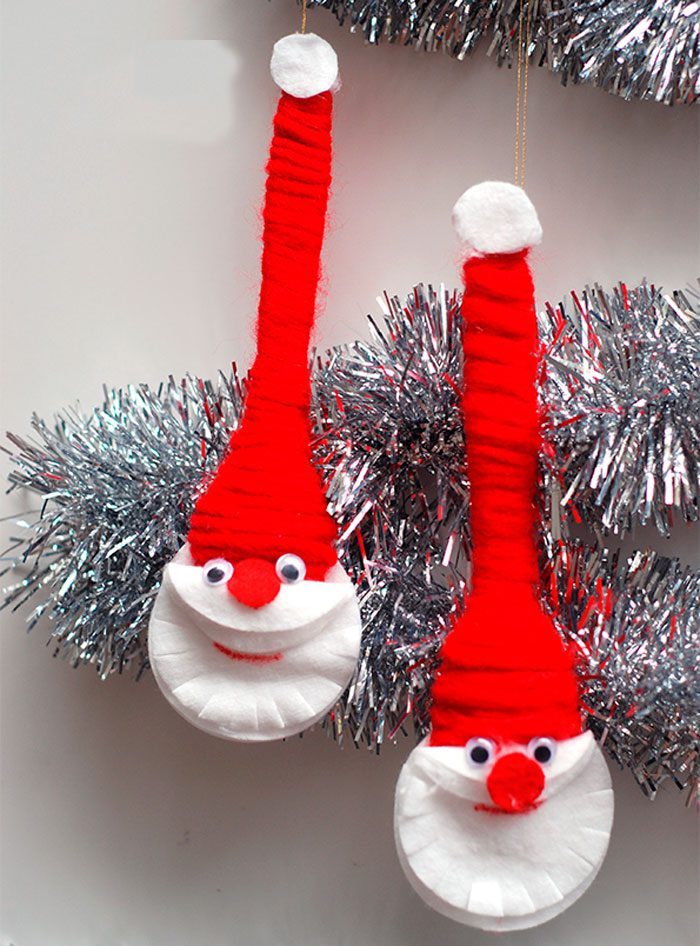 Нанесите клей с обеих сторон на кончик ложки и приклейте к выпуклой части лицо деда Мороза.