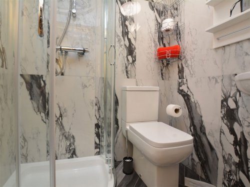 На первом этаже также находится детская спальня с двумя кроватями, а поднявшись по лестнице, вы увидите просторную главную спальню с удобной двуспальной кроватью и телевизором.