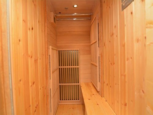 Из обеденной зоны открывается вид на внутренний дворик, где можно организовать семейный или романтический ужин. Кухня оборудована электрической духовкой и плитой, достаточным местом для хранения, раскладывающимся столом и холодильником. Далее находится гостиная со стеклянной дверью, а рядом с ней — уборная с душем и туалетом.