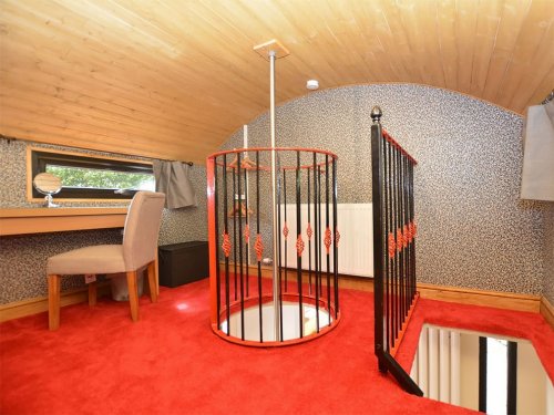 Заходя в него из зоны патио, попадаешь в уютное жилое помещение со множеством необычных деталей, в числе которых пожарный шест и потолочные кабели.