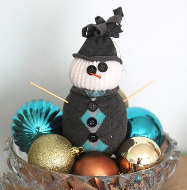 Минимум усилий и забавный снеговик готов. Остается пришить петельку и повесить его на Новогоднюю елку. Как видите, такая поделки к Новому году 2019 из всякой всячины делается довольно легко и просто!