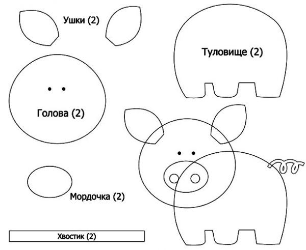 Затем форму ушек, пятачка, ручек, ножек и хвостика. Вырезаем все детали.