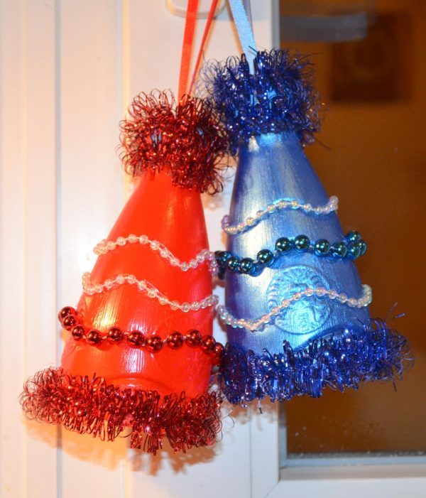 Остается покрасить их акриловыми красками и повязать красивый бантик. Еще одна поделка к Новому 2019 году готова, которая доказывает, что из всякой всячины можно сделать своими руками много интересного.