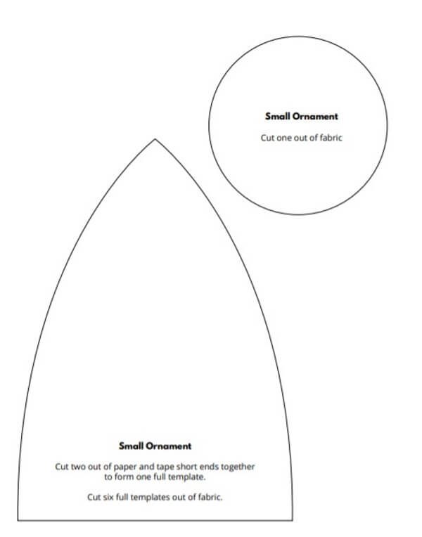 Из серебристой ткани вырезаем оставшиеся детали с выкройки и делаем подвес для шара. Сшиваем все заготовки вместе и фиксируем их на нашей объемной поделки. В качестве подвеса возьмите шнур.