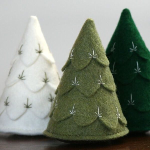 Итак, виды швов мы рассмотрели заранее. Немного попрактикуйтесь в них, но не откладывайте творчество на потом. Ведь изначально игрушку можно и склеить.Что же простого и легкого можно смастерить неопытным мастерицам или деткам? На мой взгляд — снеговики, варежки, шарики и елки — самые подходящие варианты.