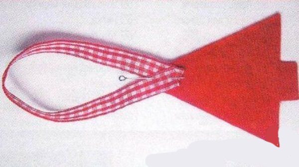 Теперь между ними кладем петельку из ленты или ниток и прошиваем края петельным швом. Оставляем небольшую часть не зашитой, чтобы наполнить игрушку наполнителем. Затем зашиваем край и украшаем поделку.