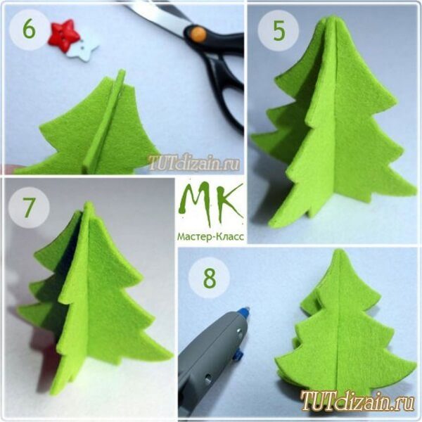 Эти праздничные деревца тоже очень просты. Но давайте рассмотрим, как же все-таки сделать такую поделку.