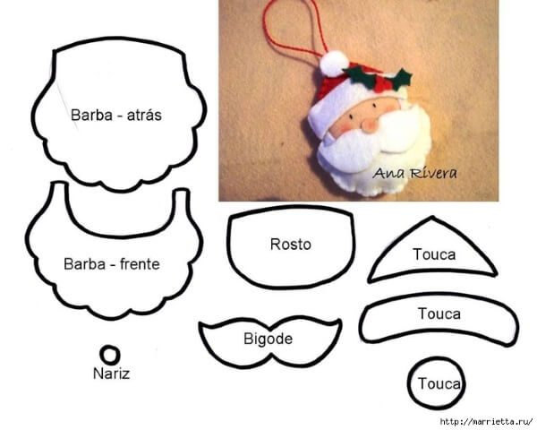Новогодняя игрушка из фетра «Дед мороз» с выкройками и схемами