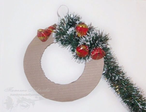 Делаем рождественский венок из конфет вместе с детьми
