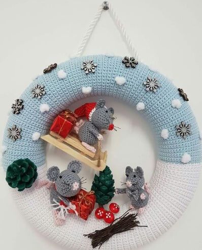 проволоку, мишуру, свитер или колготки, порезанные на полосы, декор.Из проволоки сворачиваем толстое кольцо. Оно должно хорошо держать форму.