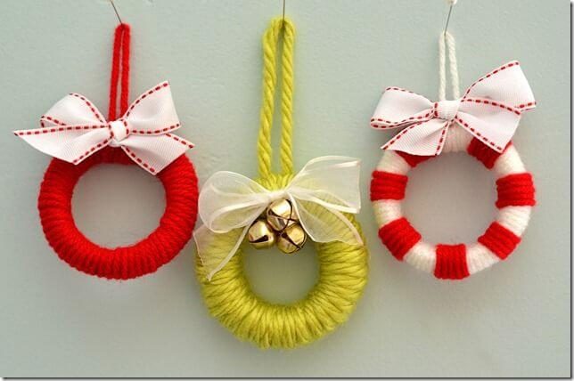 Если у вас есть пенопластовая заготовка для венка. То просто обмотайте ее пряжей. Цвета выбирайте яркие, праздничные и комбинируйте витки между собой, Обязательно фиксируйте концы.