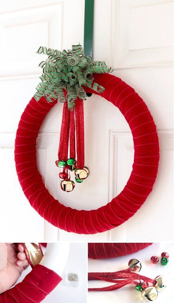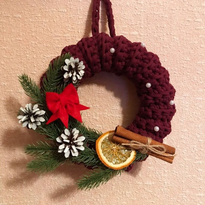 Также можно на такую пенопластовую основу надеть рукава старого свитера. И у вас очень быстро получится венок.
