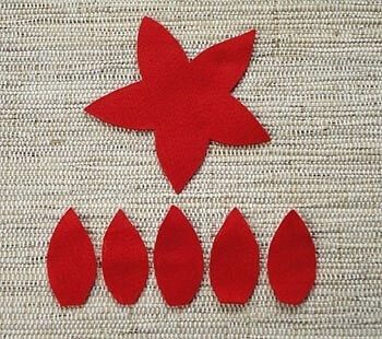 Делаем из фетра, прикладываю выкройкиТеперь посмотрим, что можно сделать из фетра. Мне очень понравилась идея из тканевой пуансеттией. Это самый новогодний и рождественский цветок. И именно его мы сделаем из фетра.
