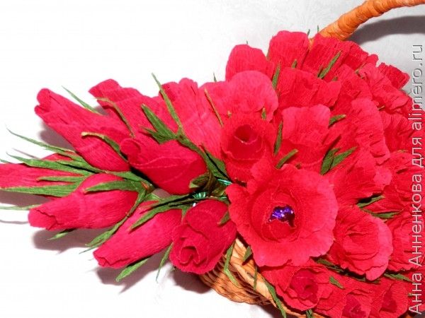 Розы из гофрированной бумаги