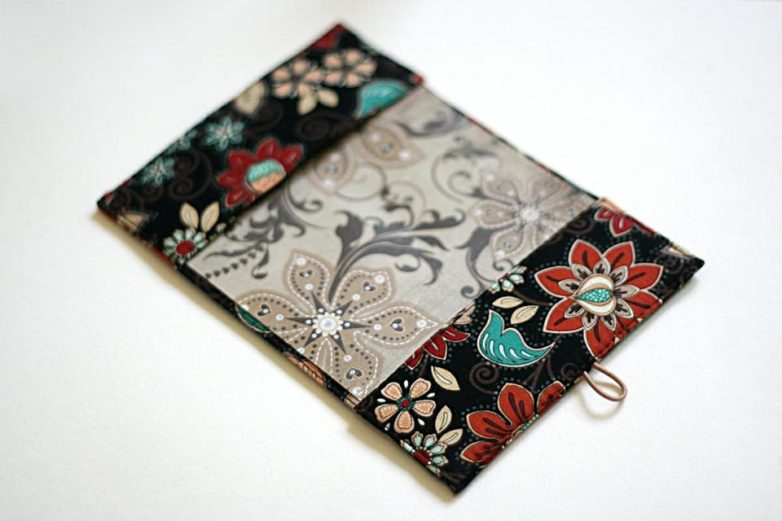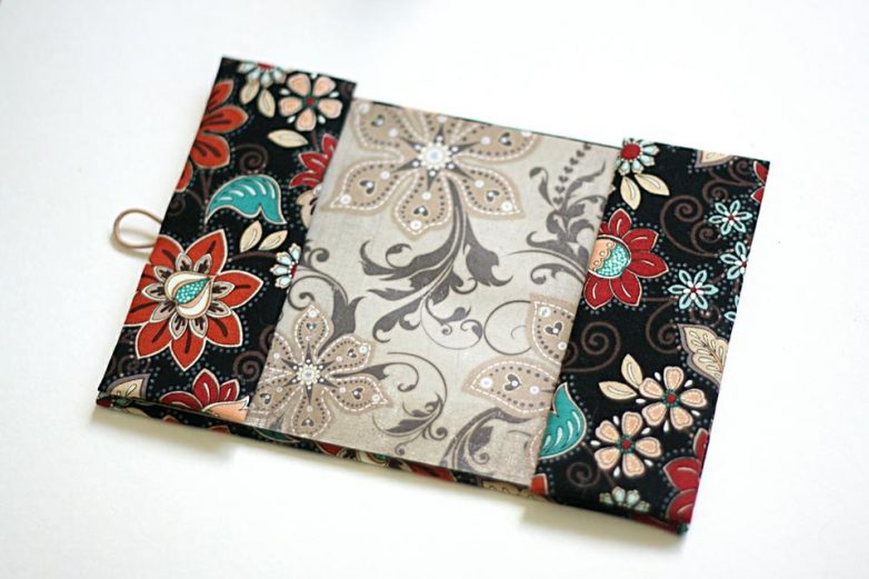 Теперь пришиваем пуговичку на лицевую сторону обложки посередине одной из коротких сторон.