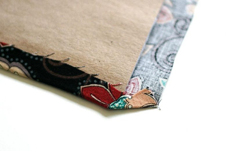 Кладем продублированные флисом детали на плотный хлопок для обложки и вырезаем из него прямоугольники с небольшими отступами от краев картонных деталей.