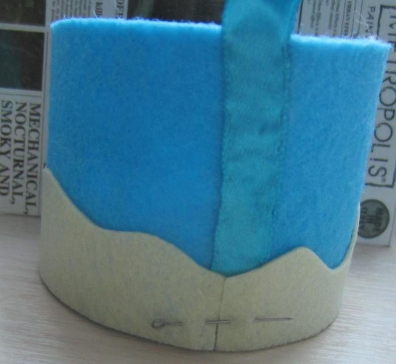 Из тонкого фетра вырезаем круг диаметром 8 см и полоску 26×3 см (верхний край в форме волны).