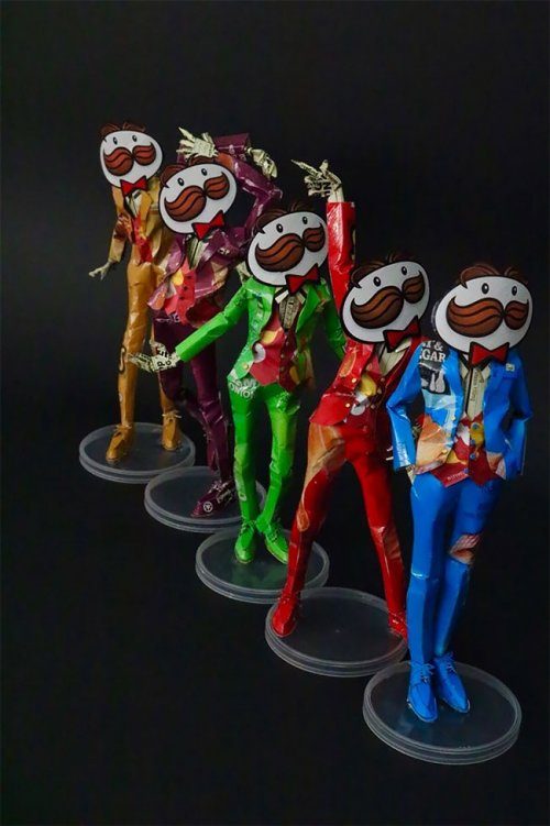 Взгляните, как он обычные цилиндрические банки от чипсов «Pringles» превращает в человечков, коробку из-под печенья «Oreo» — в самолёт, а упаковку от шоколадных батончиков — в фантастического робота.