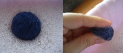 Значит можно переходить к следующему этапу. Погружаем бусину в мыльный раствор, отжимаем лишнюю воду и начинаем укатывать шарик ладонями. Я думаю, что каждый из нас в детстве любил лепить из пластилина. Поэтому особых навыков не потребуется. Катать бусинку нужно достаточно интенсивно, с небольшим нажимом. В итоге шарик должен стать плотным, упругим, без топорщащихся волосков шерсти.