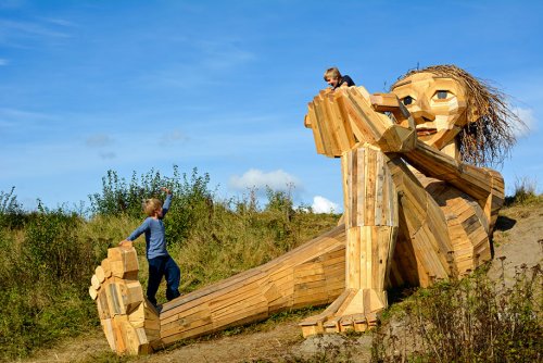 Томас Дамбо (Thomas Dambo) — датский художник, который работает с повторно используемыми материалами. За последние 3 года он сделал 25 гигантских скульптур по всему миру, а недавно создал 6 спрятанных гигантов в своём родном городе — Копенгагене.