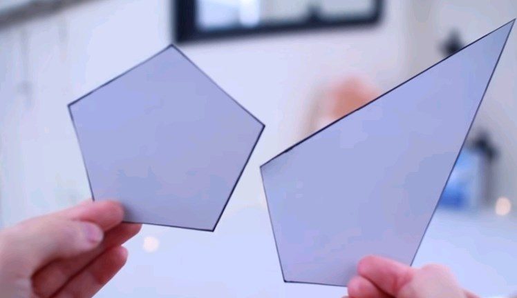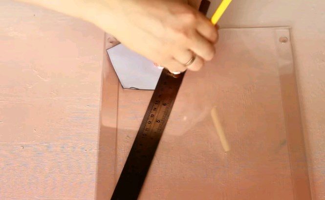 Прикладываем пятиугольник на пластик и продолжаем его стороны до пересечения — это будут стороны флорариума. Нам понадобится 4 такие фигуры.
