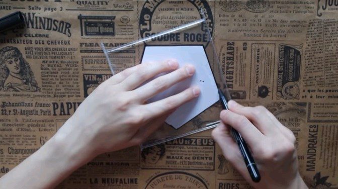 На пластике рисуем 6 таких пятиугольных фигур, как на фото.