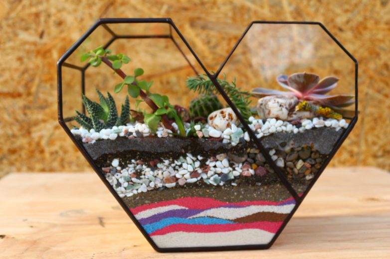Для декора идет разноцветный песок, камни, ракушки и сами растения.