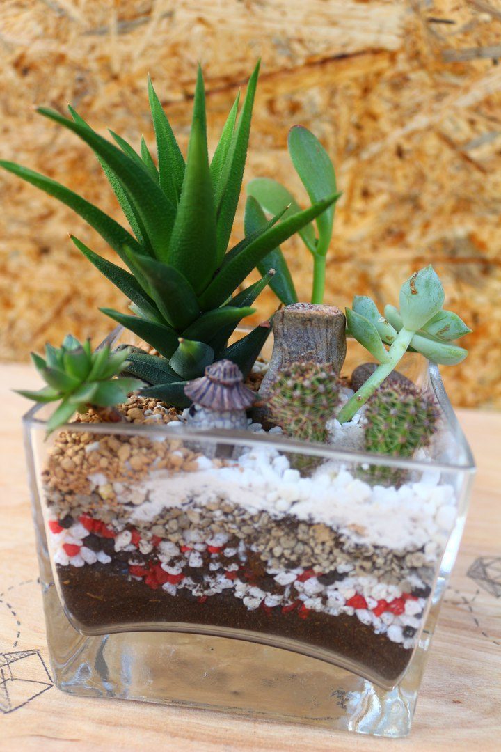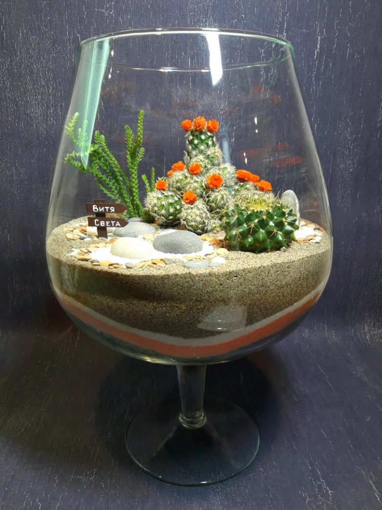 Флорариум из суккулентов и кактусов