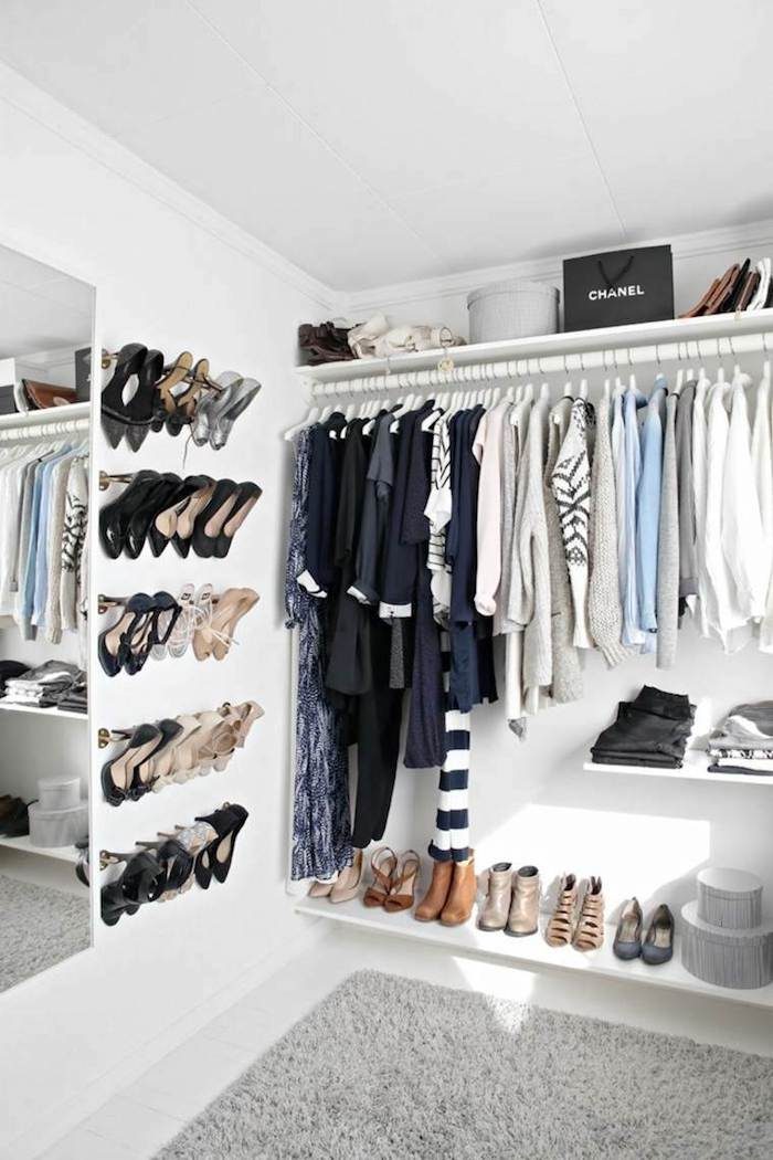 Обозначьте стену в шкафу или даже заднюю часть двери как место для хранения обуви, используя вешалки для полотенец