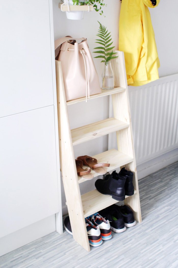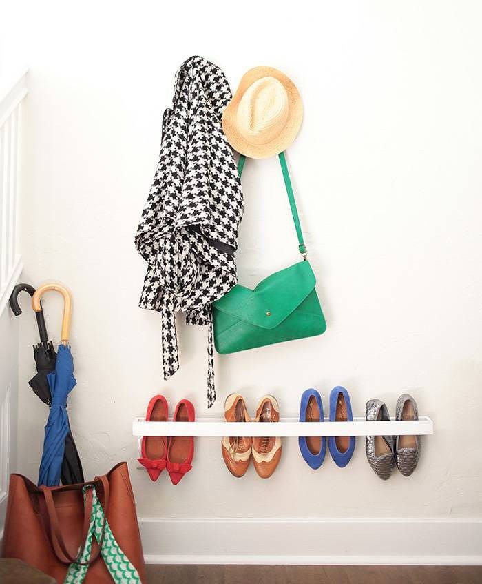 Все, что вам нужно для этого быстрого и простого проекта, так это пару досок, краска и клей. Эта полка для обуви обеспечивает минималистское решение для хранения, идеально подходящее для ограниченного пространства