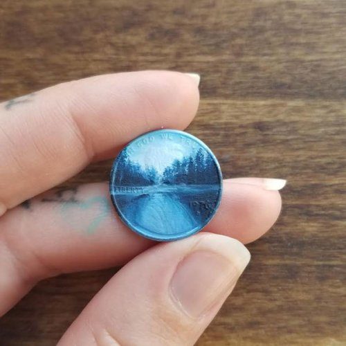 Сегодня Мари преимущественно пишет маслом традиционные пейзажи на монетах, стремясь доказать, что даже крошечные предметы могут похвастаться изобилием чудес и красоты!