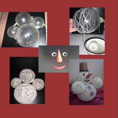Из ниток можно делать не только кукол, но и много других поделок. Вспомните такие популярные в советское время абажуры в виде шаров из нитей. Наматывая нити, смоченные клеем, на воздушные шары, можно получить основы для различных фигурок, например, снеговика.