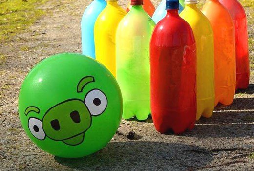 Можно отлично провести время семьей на воздухе, поиграв в самодельный боулинг.