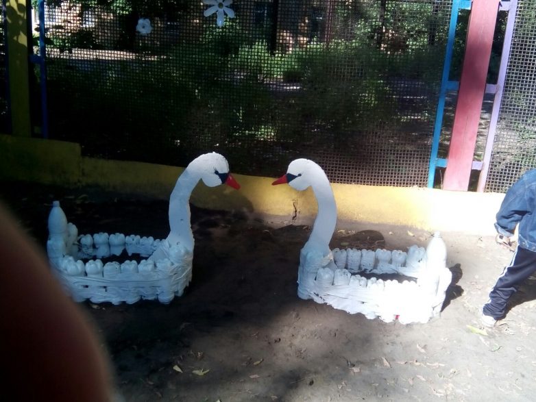 Из такого податливого материала, как пластиковая бутылка создают, как простые предметы домашнего обихода, так и целые композиции для сада.