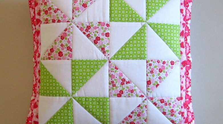 Русский квадрат. Если посмотреть на данную схему, то может показаться, что она сложная для новичков. Но это мнение ошибочно. Подушка состоит из лоскутов, имеющих форму квадрата и треугольников. Квадрат располагается в центре, а к его сторонам пришиваются треугольники. В результате эта комбинация тоже образует квадрат.