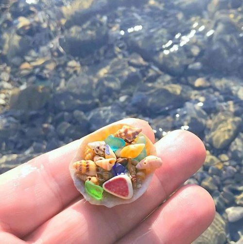 Марина много времени проводит на пляже в поисках морских сокровищ для изготовления украшений на морскую тематику. Она ищет не только кораллы и ракушки, но и редкое стекло и керамику. А в своём Instagram-аккаунте девушка публикует фотографии, показывая не только изготовленные украшения, но и находки, сделанные на пляже. В этой коллекции вы увидите несколько самых интересных и необычных находок Марины: